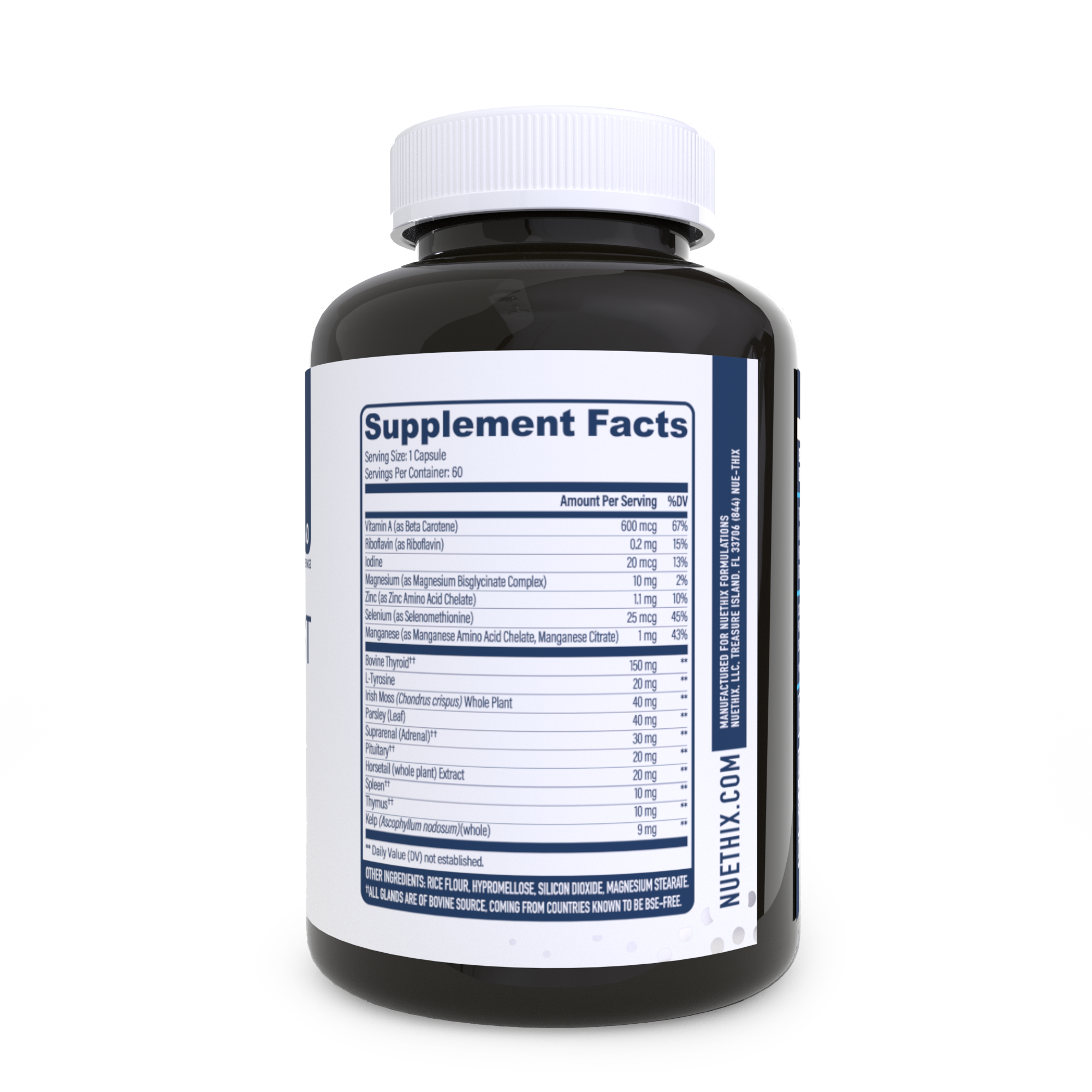 Other Ingredients: Rice Flour, Cellulose, Silicon Dioxide, Magnesium Stearate. †All Glands Are Of Bovine Source, Coming From Countries Known To Be Bse-free. No Corn, Wheat, Milk, Egg, Sugar, Artificial Flavors, Colors Or Preservatives.