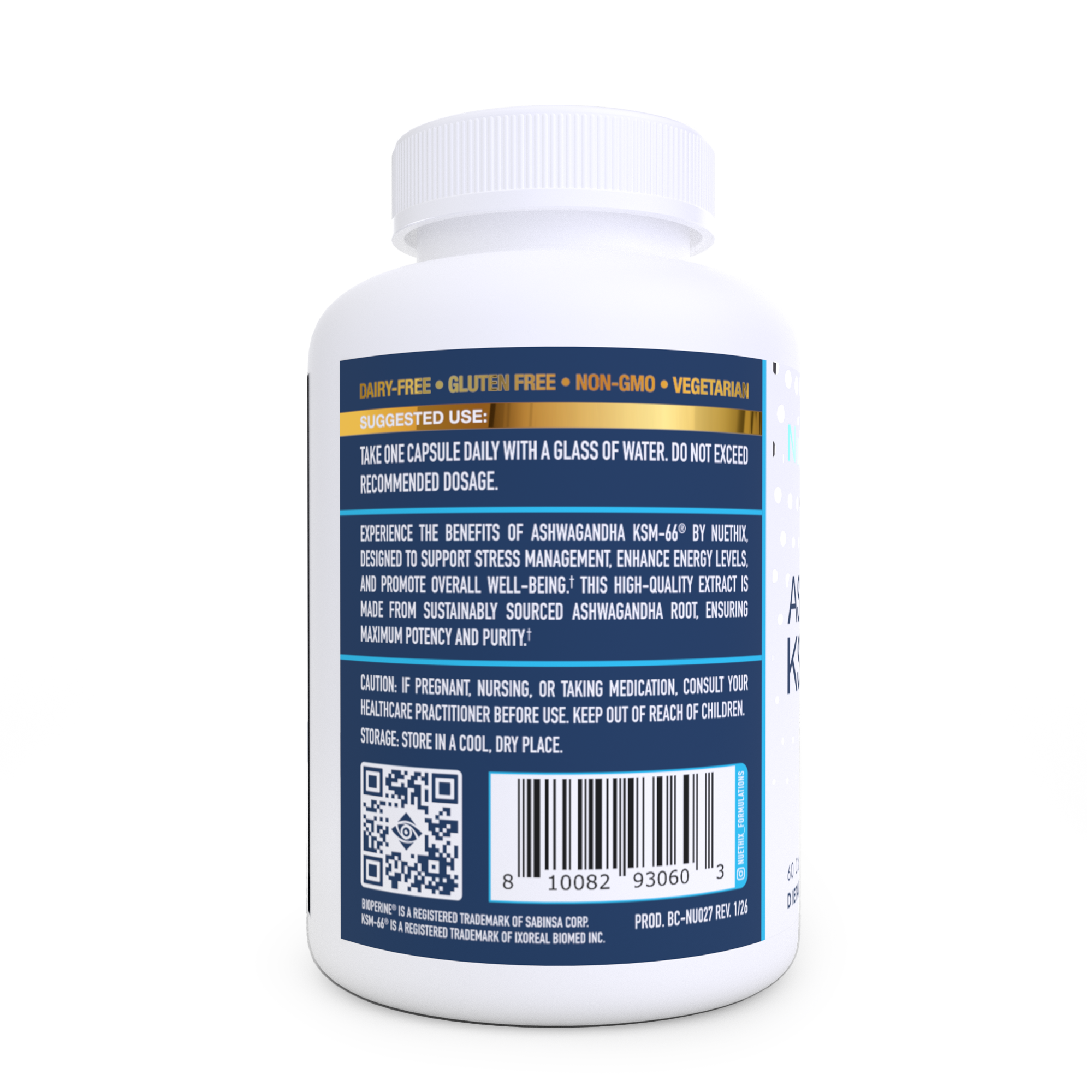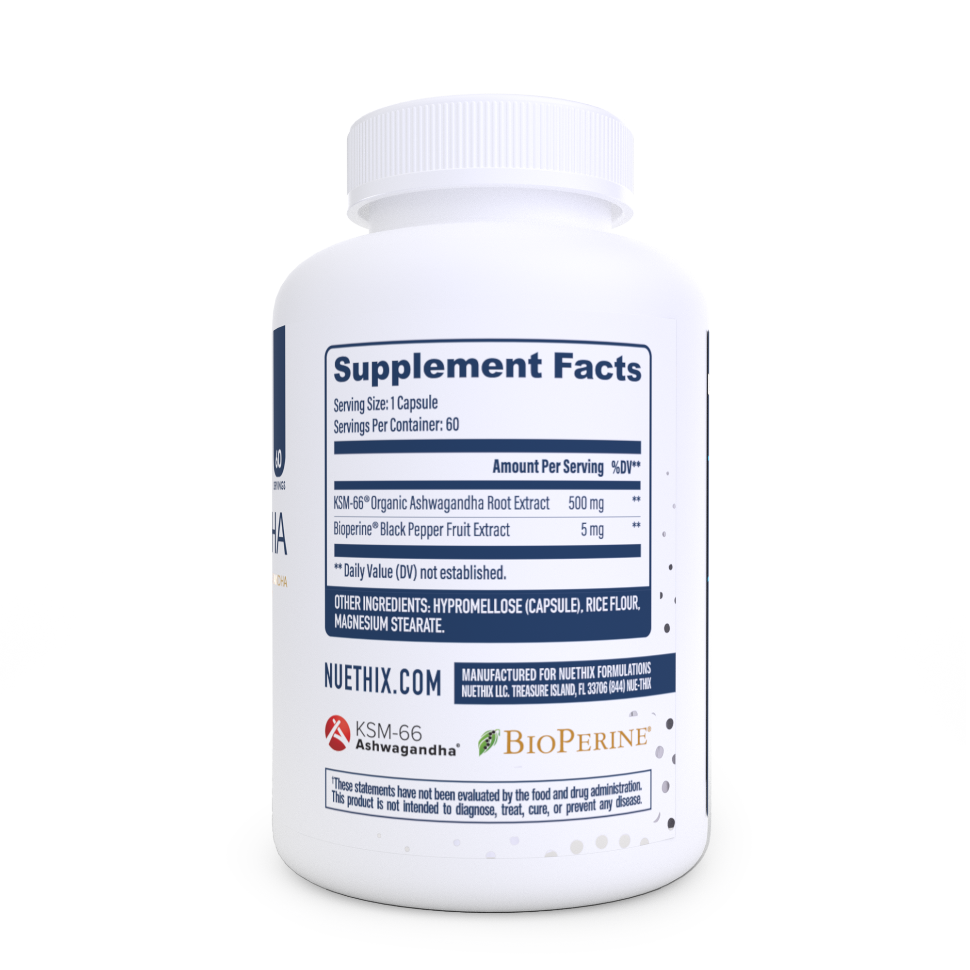 Additionally, each serving includes 5 mg of Bioperine® Black Pepper Fruit Extract, which is scientifically proven to enhance the bioavailability and absorption of nutrients. By incorporating Bioperine®, NuEthix Formulations ensures that the benefits of Ashwagandha KSM-66® are effectively delivered to your system.
