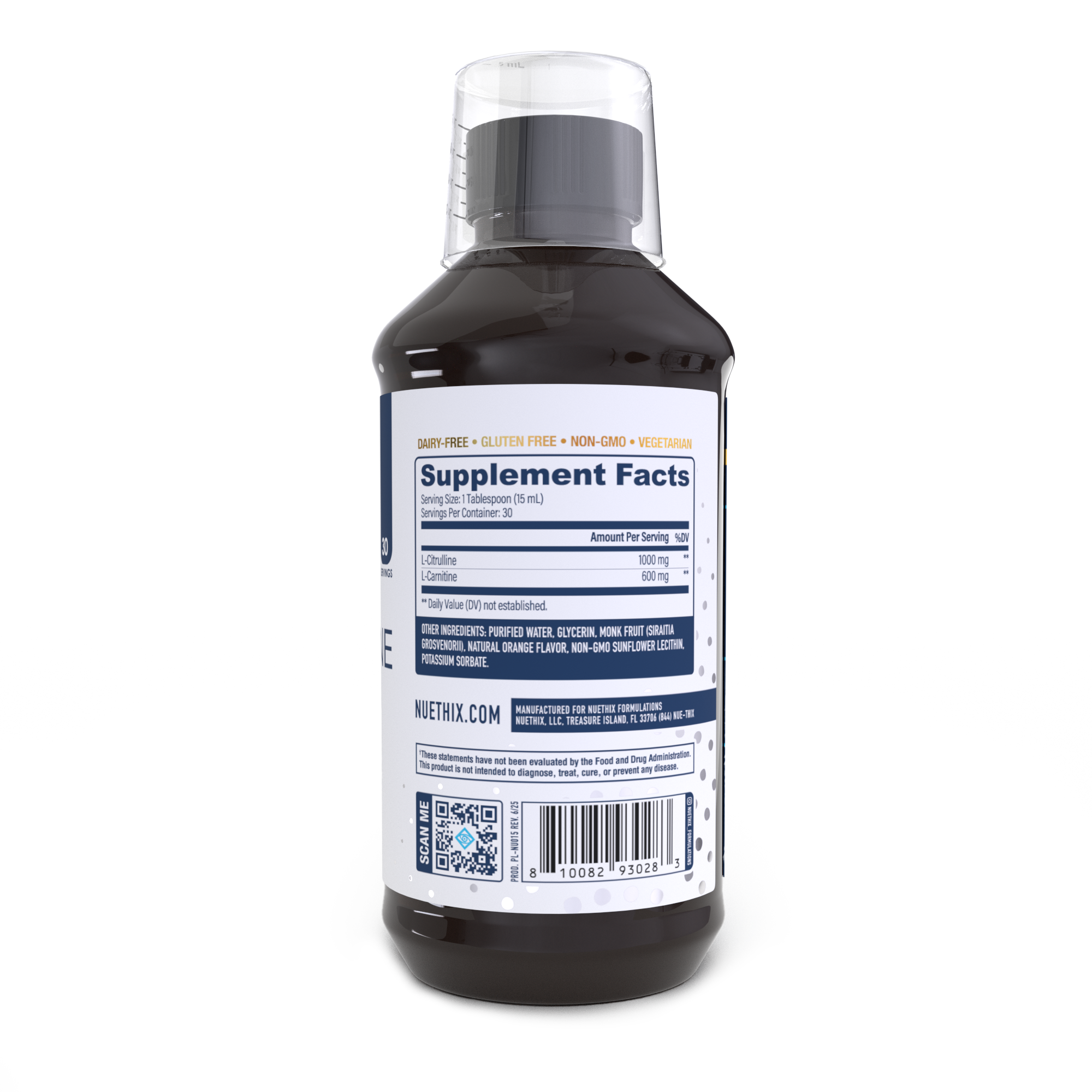 Other Ingredients: steam distilled water, vegetable glycerin, natural orange flavor, lecithin (from sunflower), potassium sorbate, monk fruit extract.